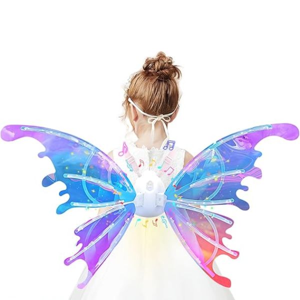 Complementa el outfit de tu princesa dandole una hermosas alas con luz, sonido y movimiento.