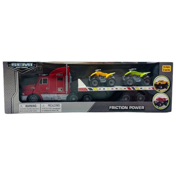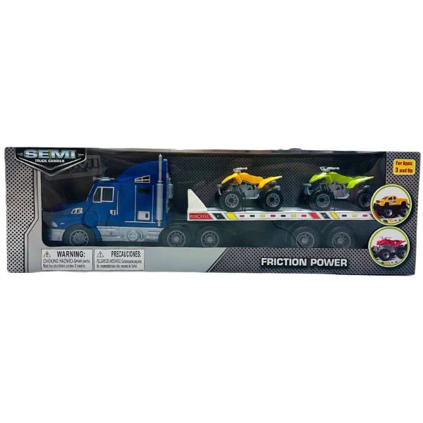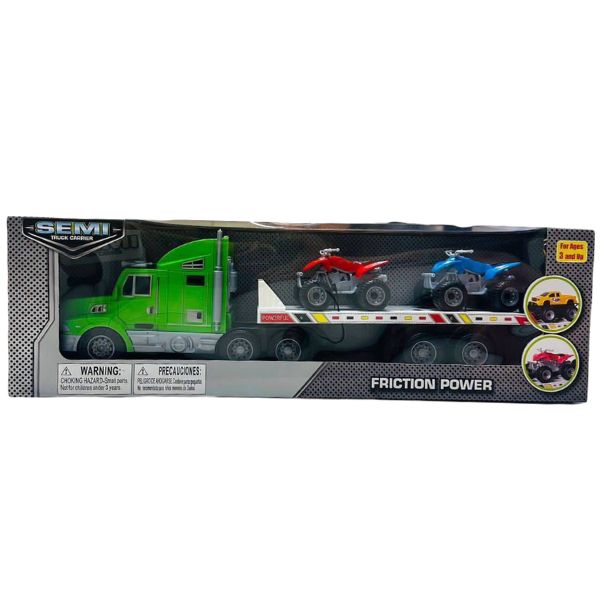 Los pequeños amantes de las aventuras sobre ruedas amarán este set de trailer con dos cuatrimotos de fricción, ideal para pasar horas de diversión en casa y en todos lados.