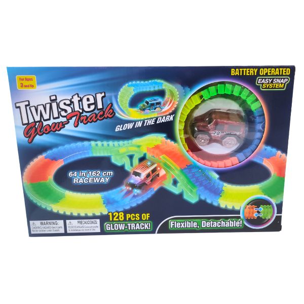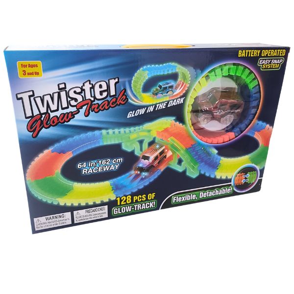 Diseña, arma y juega por horas con esta pista que brilla en la oscuridad.