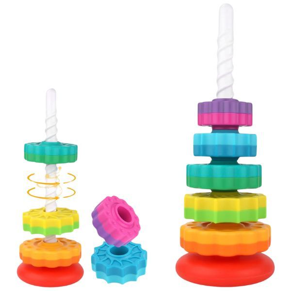 Ayudale a tu pequeño a desarrollar sus habilidades motoras finas, a identificar lo colores y a su coordinación mano-ojo com esta colorida torre.
