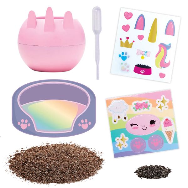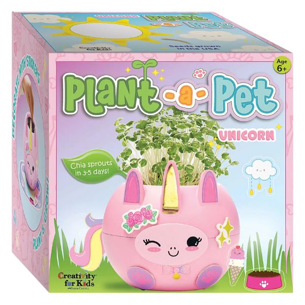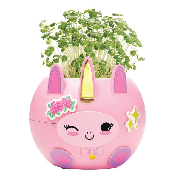 ¡Unicornio mágico! Este kit incluye una maceta con forma de unicornio, semillas y tierra para cultivar una planta. ¡Decora tu maceta y ve cómo crece la "crin" de tu unicornio!