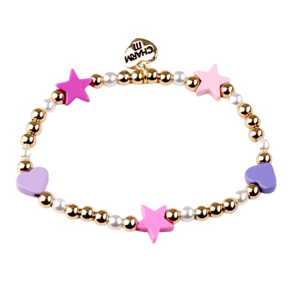 Charm It - Pulsera Dorada Stretch con Estrellitas y Corazones