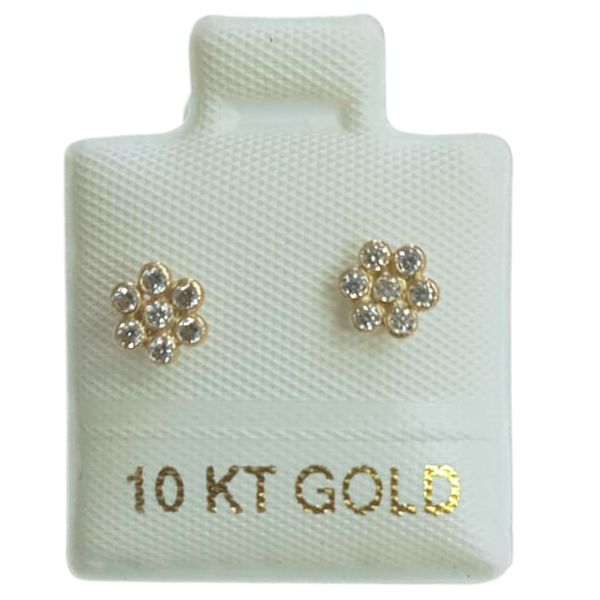 Tierno par de aretes de florecita con zirconia blanca en oro 10kt.