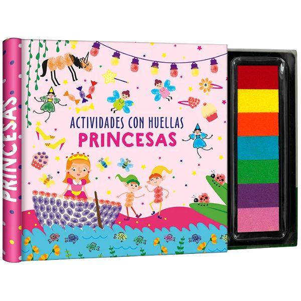 Divertido libro con almohadillas de tinta en colores llamativos que invitan a los niñas a explorar el mundo de las princesas utilizando sus propias huellas. Presiona su dedo sobre el color elegido y luego sobre una página para dejar una impresión colorida.