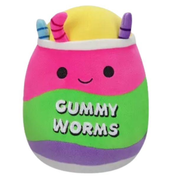 Squishmallow Silver Gummy Worms es una tierna bolsa de gomitas en llamativos colores fluorescentes perteneciente al Food Squad, mide 20cm.