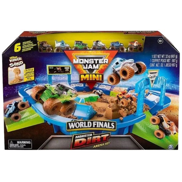 Diseñado para replicar la emoción de los eventos reales de Monster Jam, este set permite a los niños crear sus propias pistas de estadio utilizando "Monster Dirt" (arena cinética).
