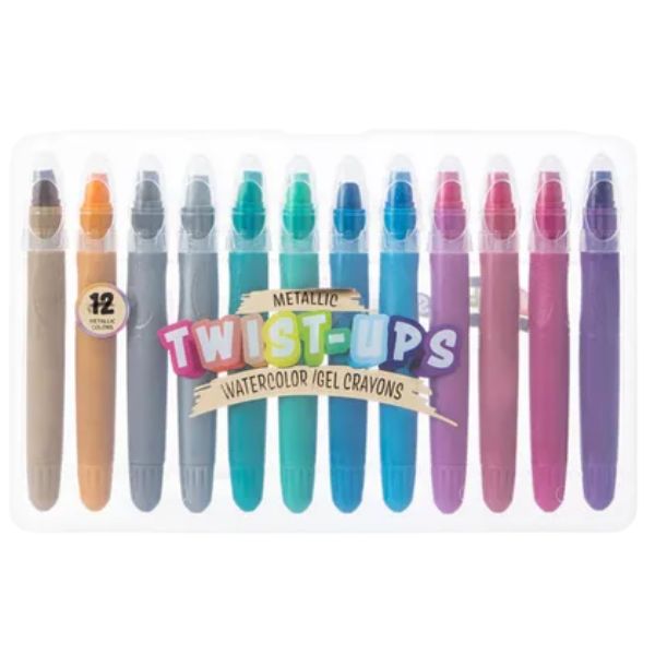 Paquete de 12 crayones de gel de acuarela metálicos "Twist-Ups". Se pueden mezclar con agua para crear efectos de acuarela.