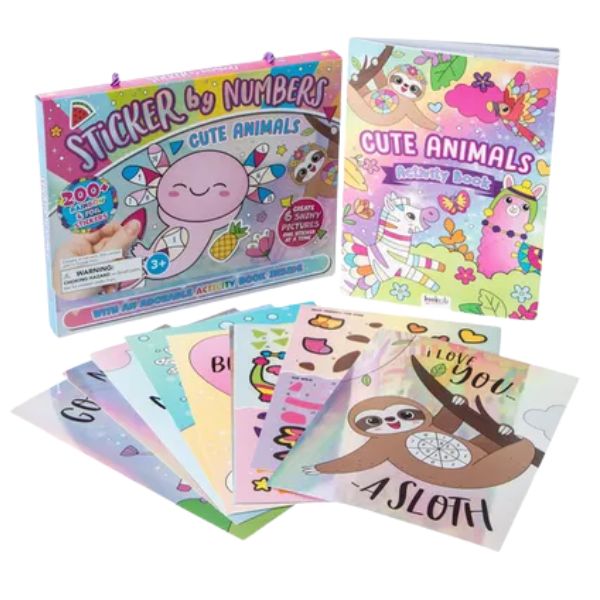 Libro de actividades para colorear con stickers por número con temática de tiernos animalitos.