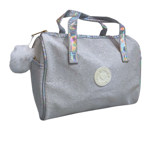 Linda bolsita de mano tipo maleta adornada con una borlita del mismo color, ideal para llevar las pertencias en el día a día.