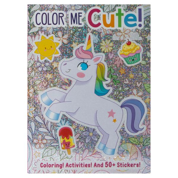 Libro de actividades con diseños adorables con unicornios, comida y otros elementos. Incluye páginas para colorear, actividades y más de 50 stickers.