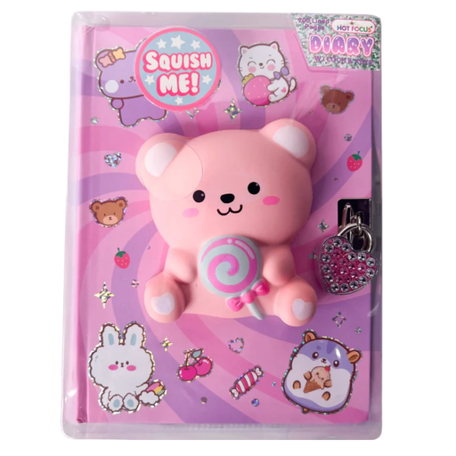 Tierno diario con candado en forma de corazón adornado con tierno osito squishy.