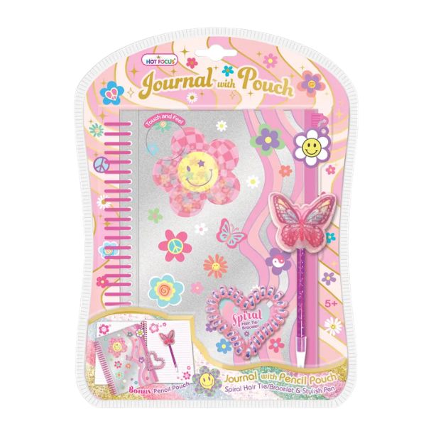 Set de diario infantil con diseño de flores, que incluye una libreta, estuche para lápices, bolígrafo y accesorios.