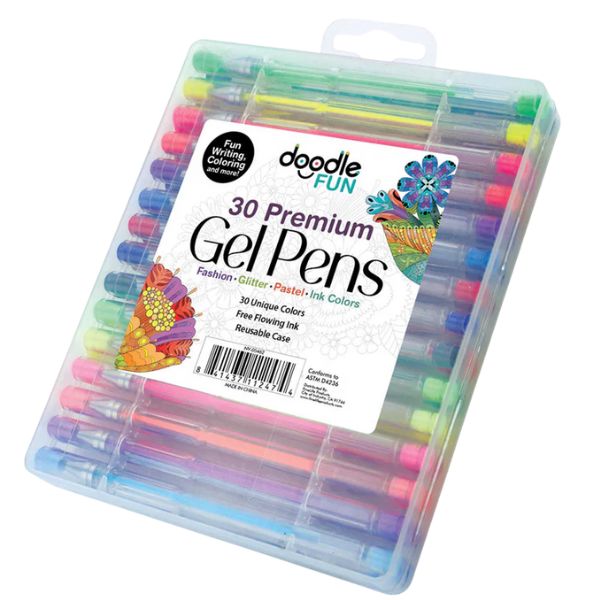 Set de 30 bolígrafos de gel premium de tinta con glitter y en tonos pastel.
