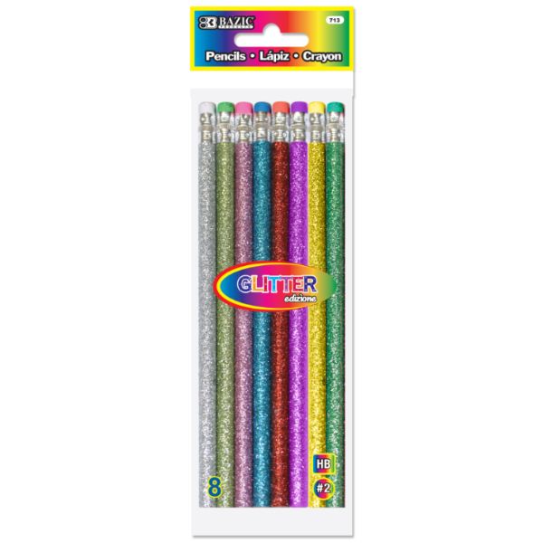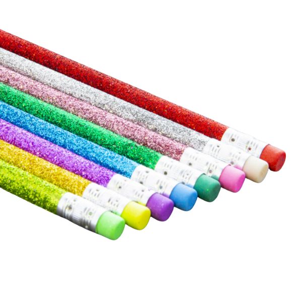 Set de 8 lápices de madera con glitter con punta de grafito HB #2.
