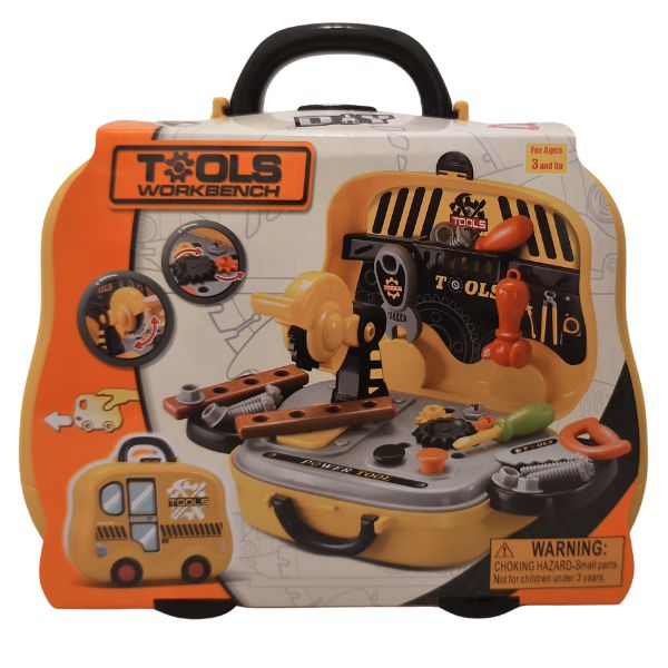 A los pequeños amantes de la construcción les fascinará este pequeño set de herramientas que se tranforma en una estación de trabajo.