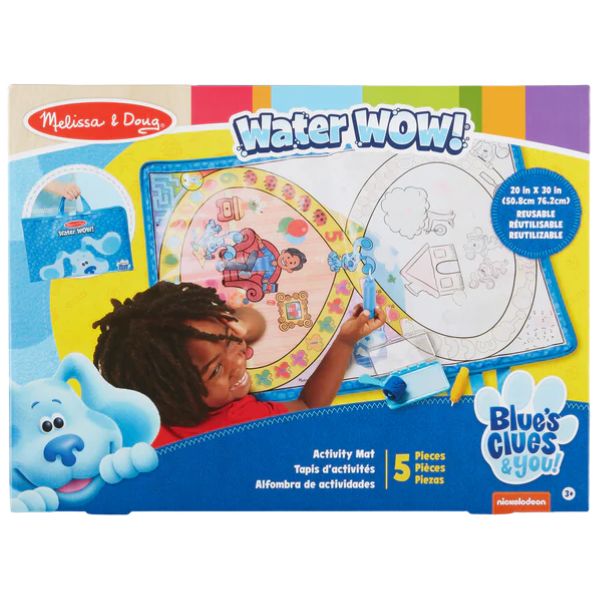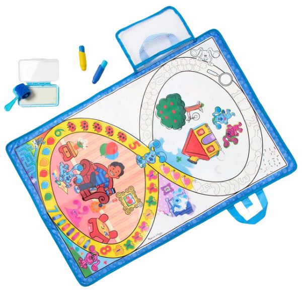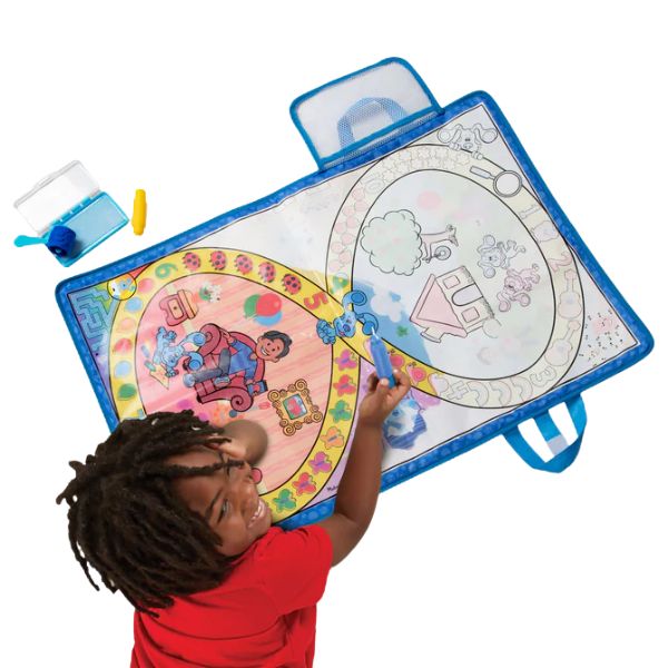 Tu pequeño se sorprendera con la magia al revelar imágenes con agua en el tapete plegable de Pistas de Blue con bolsa de almacenamiento adjunta, deja secar y luego colorea nuevamente.