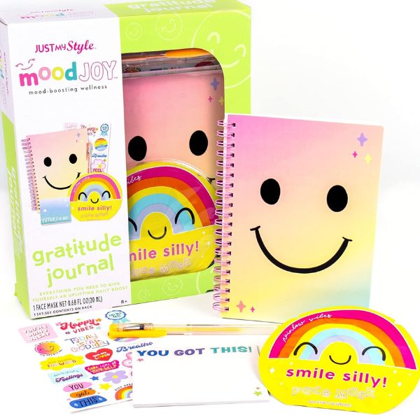 Lindo set de diario pensado para escribir pensamientos positivos y de gratitud enmarcado con una Happy Face.
