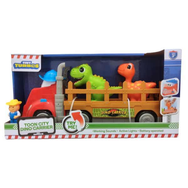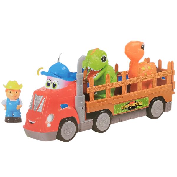 Tierno tractorcito con luces y sonidos para trasnportar Dinosaurios.
