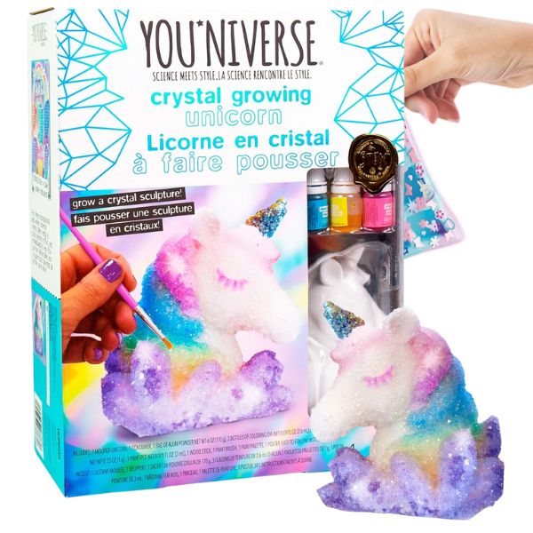 Con un poco de química y mucha creatividad, puedes cultivar cristales en un unicornio y diseñar una decoración de habitación brillante.