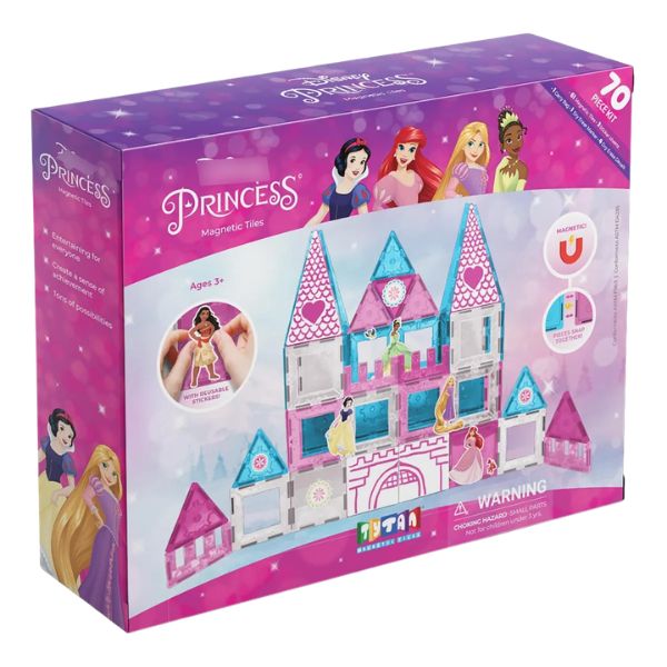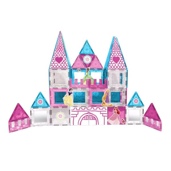 Set de Construcción Tytan Tiles Disney Princess Castle, incluye 172 piezas magnéticas para construir un castillo, incluyendo paneles, cubos y personajes.